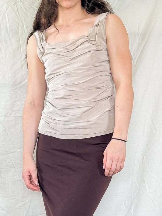 Issey Miyake Pleats Please Brown Abstract Short Sleeve Top